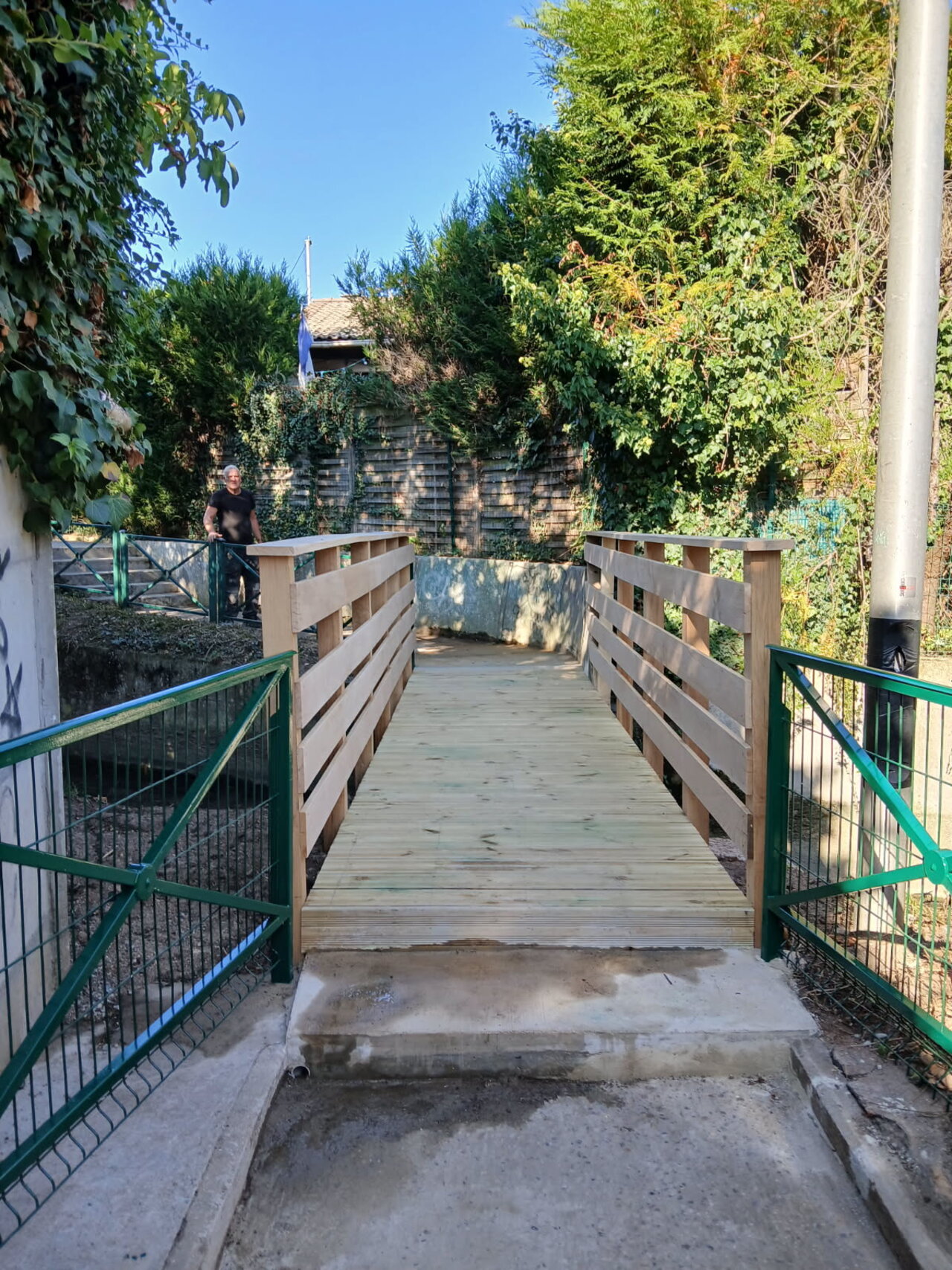 ➡ Les travaux de réhabilitation de la passerelle reliant la rue des Cressonnières à la rue de la Fontaine sont désormais achevés.
