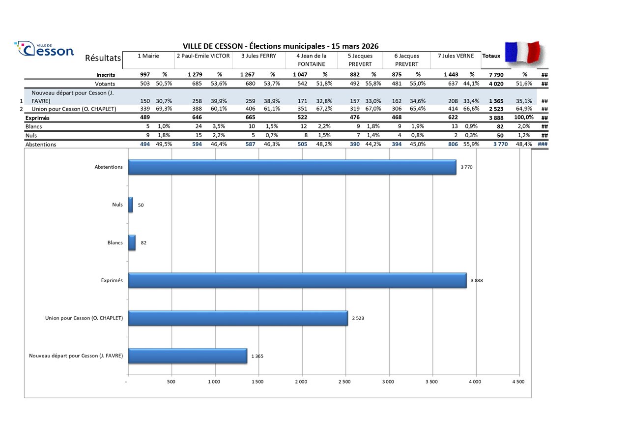Retrouvez ci-dessous le résultat des élections municipales du 15 mars 2026