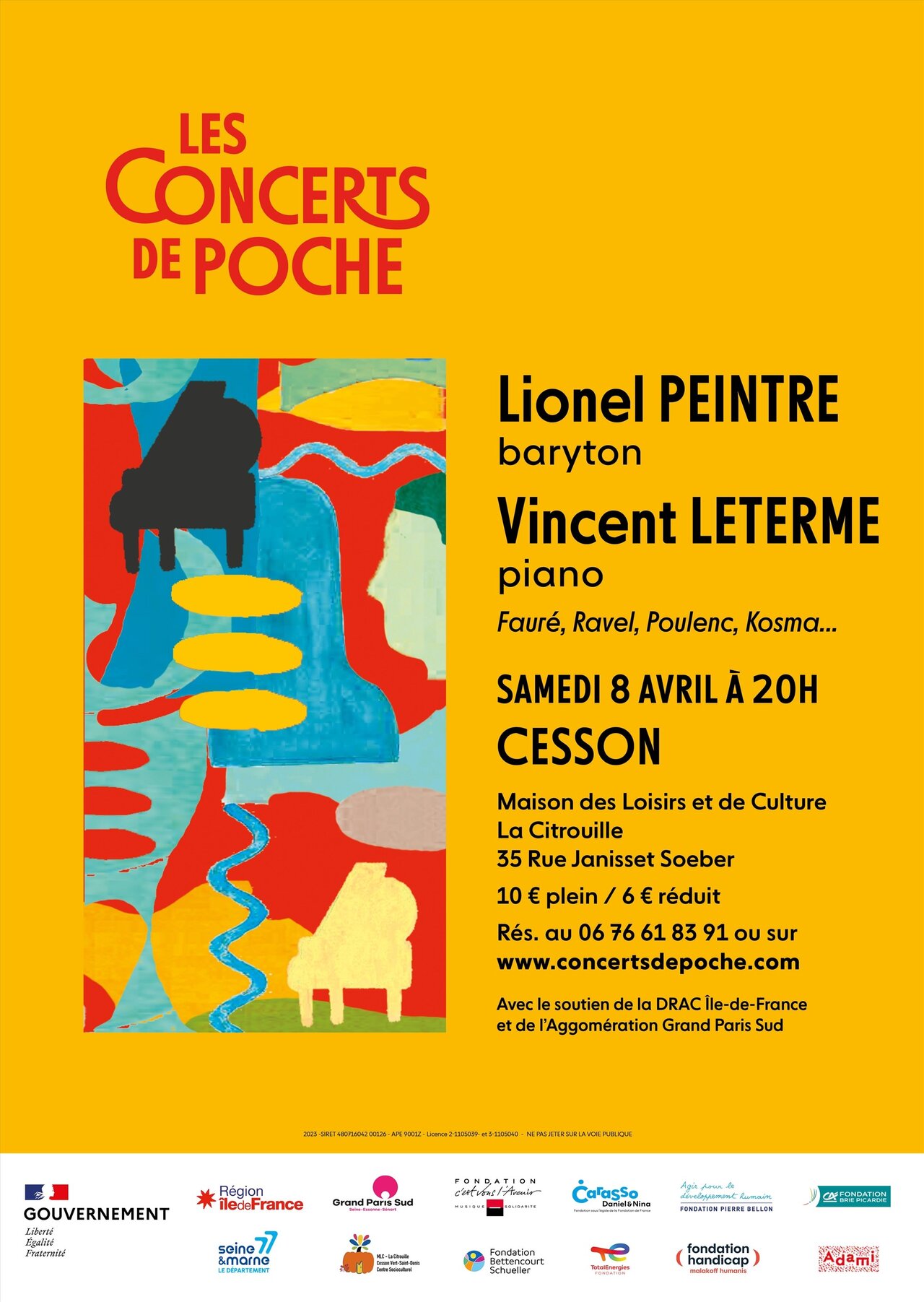 La musique des mots de Fauré et les mélodies de Kosma s’envolent grâce à la magie complice de ce duo hors pair. Ils sont partenaires depuis bien longtemps mais se produisent pour la première fois aux Concerts de Poche. Ces deux musiciens éclectiques, originaux et facétieux se jouent des époques, passant allègrement du répertoire classique à des compositions imagées du XXe siècle. La voix chaude et vibrante du chanteur baryton transfigure les mots des poètes, comme s’il nous proposait plusieurs façons de les comprendre, du rire aux larmes.
