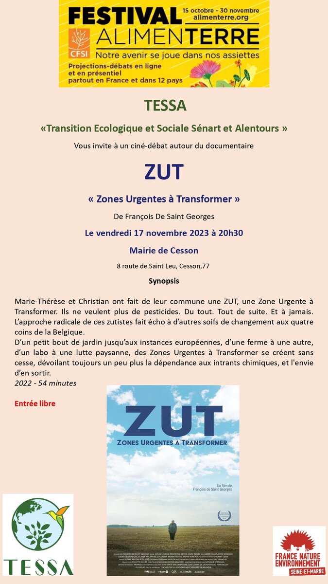 Le documentaire ZUT de François de Saint Georges sera projeté et fera place à un débat sur la transition écologique.