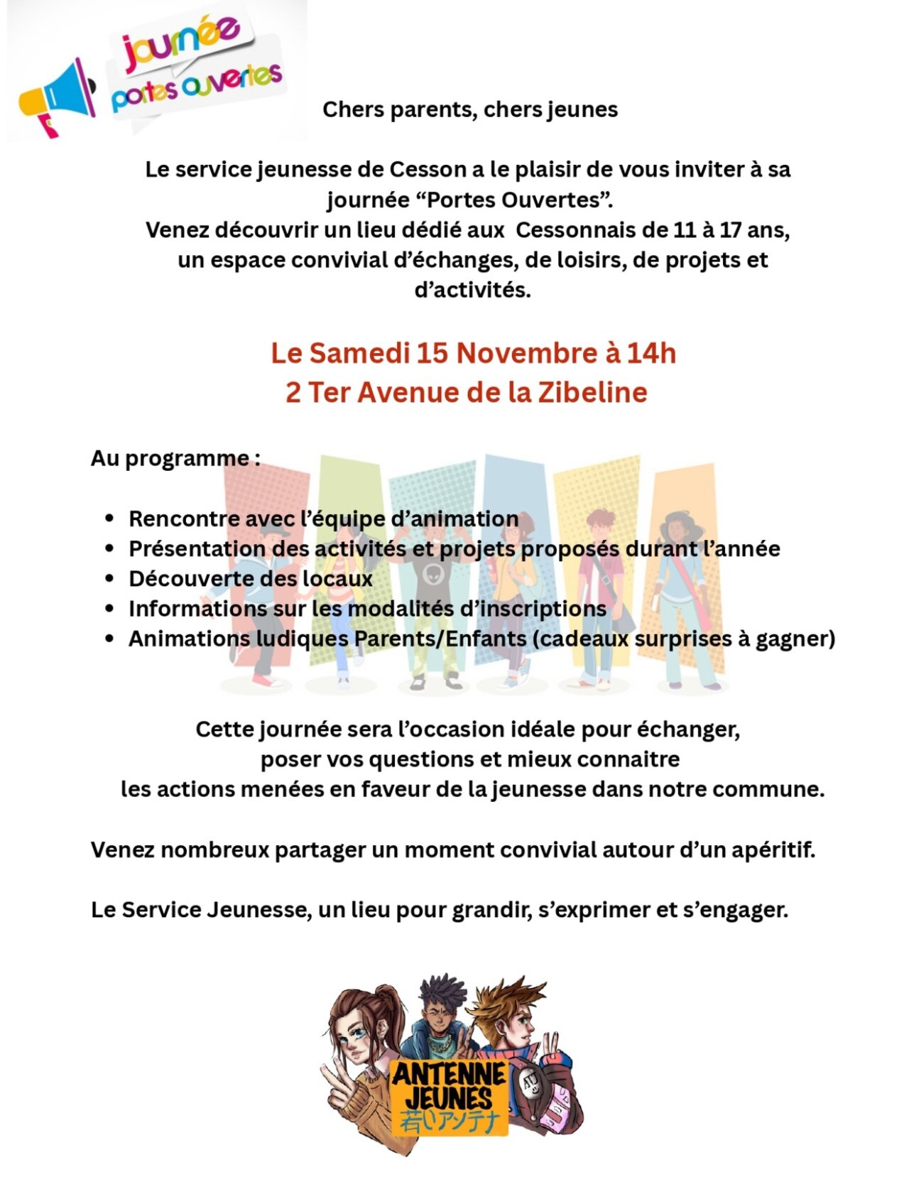 📅 L' Antennes jeunes Cesson organise une journée portes ouvertes le samedi 15 novembre à partir de 14h (2Ter Avenue de la Zibeline).